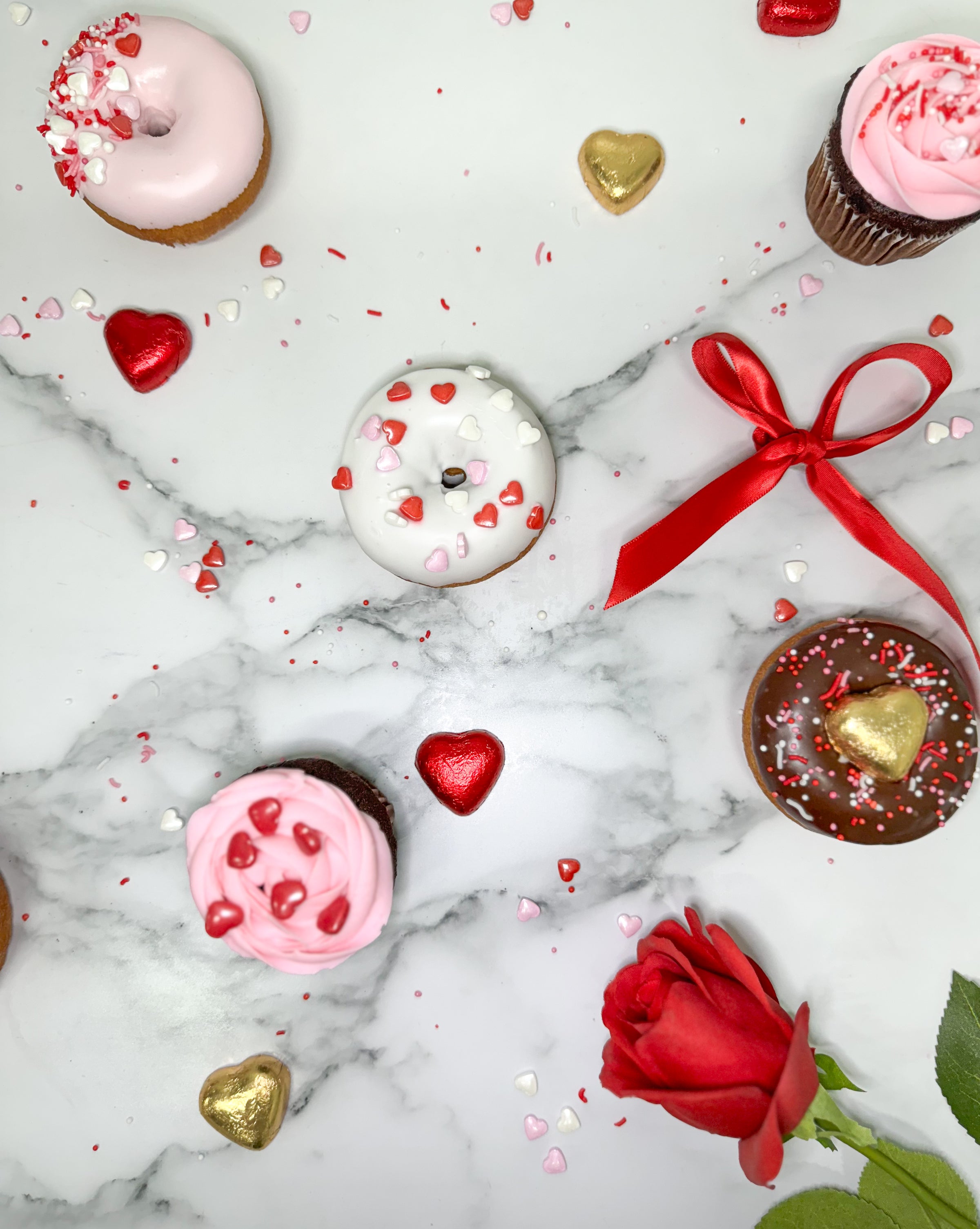 Cupid helped us bake these scrumptious sweets for your lover. Our delectable donuts and chocolate cupcakes are made with extra, extra love. Just remember, you can’t eat flowers.